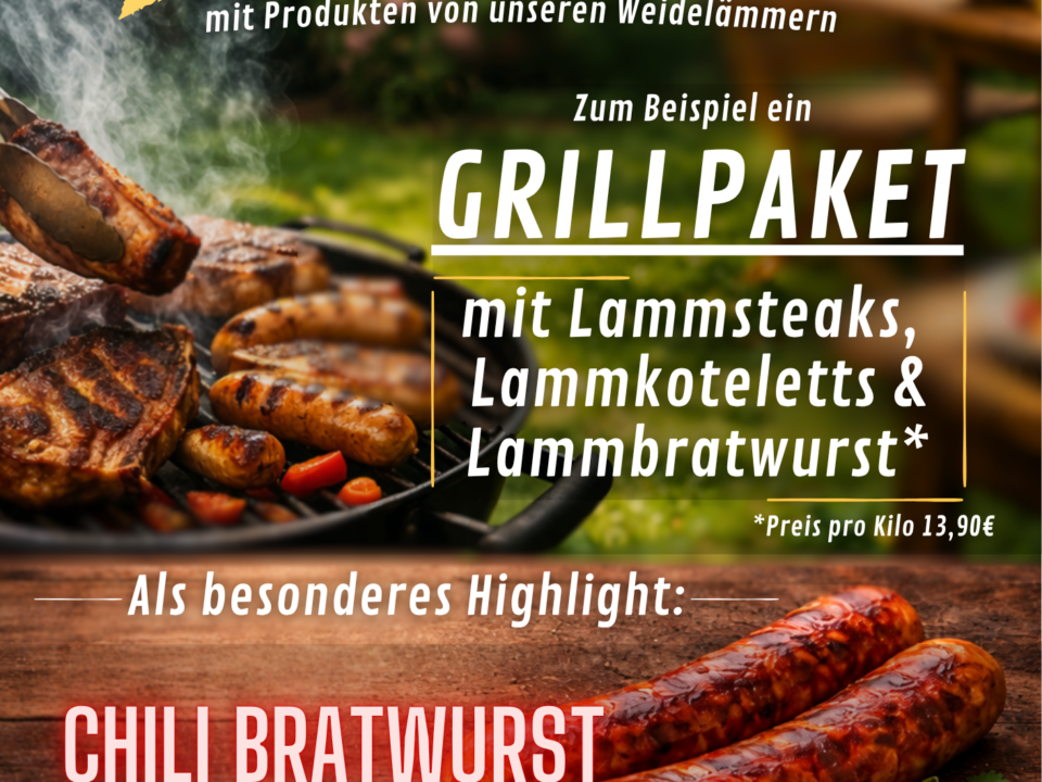 Grillfans aufgepasst! Wir eröffnen die Grillsaison – und das mit bestem Lammfleisch direkt von unseren Weidelämmern Freut euch auf unser leckeres Grillpaket mit saftigen Lammsteaks, zarten […]